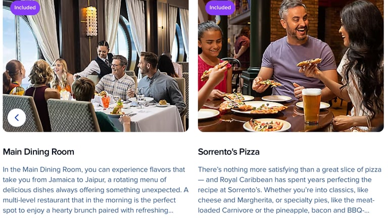 Not included: specialty dining, Wi-Fi, gratuities, shore excursions, and some onboard experiences.