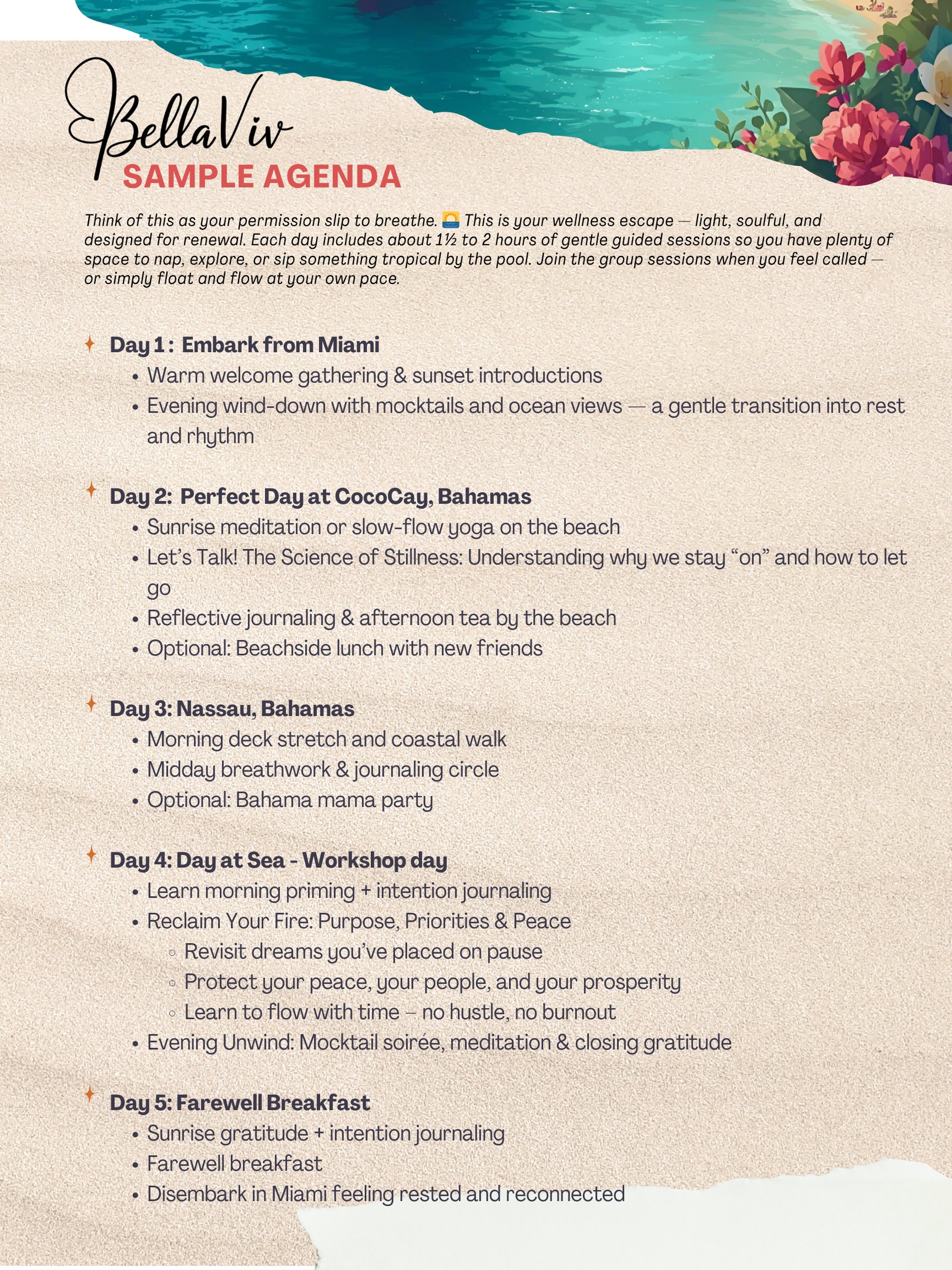 The all-inclusive cruise experience offered by the cruise line PLUS curated wellness activities provided by BellaViv Co.